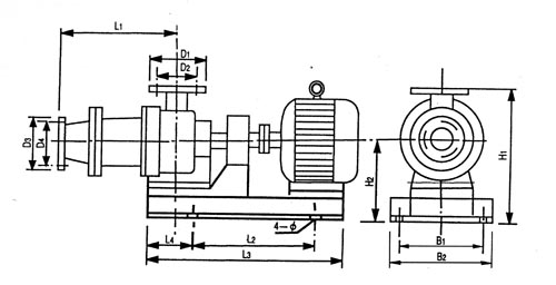 I-1B系列單螺桿濃漿泵由電動(dòng)機(jī)、聯(lián)軸器、泵和底座四個(gè)部分組成(見附圖)。