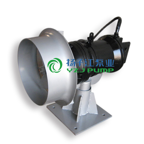 潛水攪拌機的電機繞組為F級絕緣,防護等級為IP68。在污水廠的曝氣系統(tǒng)中配合使用,可使系統(tǒng)能耗大大降低,且充氧量明顯提高,能有效的防止沉淀。根據(jù)工藝要求,直聯(lián)式潛水攪拌可配用導流罩。